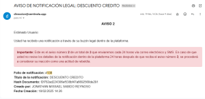 24 horas después si el usuario aún no ha visto los detalles de la notificación dentro del sistema Centinela, procederá a recibir el aviso número dos en ambos medios