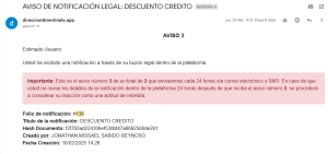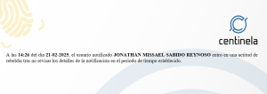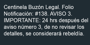 24 horas después si el usuario aún no ha visto los detalles de la notificación dentro del sistema Centinela, procederá a recibir el aviso número tres y último en ambos medios