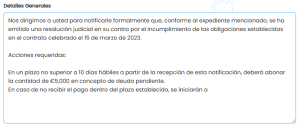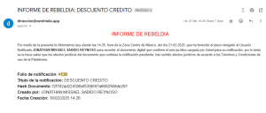 Y por último, al documento adjunto de la notificación legal, se añadirá una hoja con el registro del evento de rebeldía