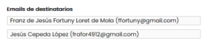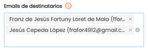 5. En caso de haber seleccionado algún contrato se cargarán de manera automática los firmantes y observadores relacionados al contrato, puedes agregar otros usuarios o quitar según tu necesidad. Si no seleccionaste algún contrato, escribe de manera manual —el sistema verificará que se encuentren registrados— el correo de los usuarios que desees asignar a esta notificación legal.
