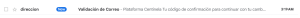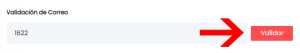 7. Digita el código que recibiste en el mensaje de correo electrónico, y haz click en el botón VALIDAR