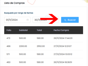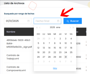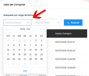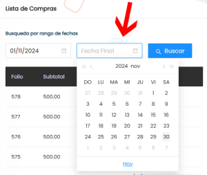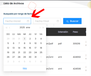 1. Filtra tu búsqueda a través de un rango de fechas, haz click sobre el campo Fecha inicial y selecciona la fecha de inicio