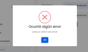 4. Si el correo electrónico insertado ya fue validado se te mostrará un mensaje de error como el siguiente
