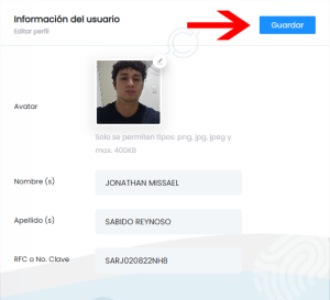 4. Una vez que consideres listo tus nuevos datos personales, haz click en GUARDAR