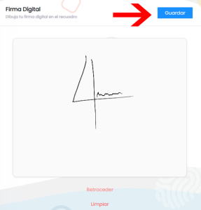 4. Una vez que consideres listo el dibujo de tu firma digital, haz click en el botón GUARDAR