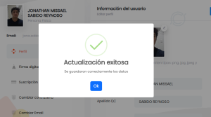 En esta sección, puedes editar y actualizar tus datos personales, como tu nombre, tu foto de perfil, apellidos y RFC (para usuarios mexicanos). La foto que te tomas en esta sección es la que servirá en todo el proceso para comparar tus firmas digitales.