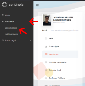 1. En el menú lateral izquierdo haz click en PRODUCTOS y posteriormente click en DOCUMENTOS