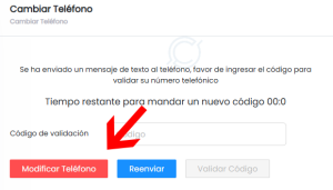 8. Si te equivocaste al escribir tu número telefónico haz click en el botón MODIFICAR TELÉFONO para empezar nuevamente el proceso