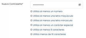 2. Escribe tu nueva contraseña, asegúrate de cumplir los requisitos solicitados