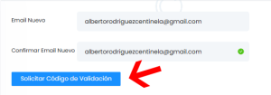3. Si ambos valores coinciden, se habilitará el botón SOLICIRAR CÓDIGO DE VALIDACIÓN, haz click sobre el