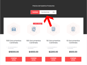En esta opción, puedes ver si tienes alguna suscripción activa. Las suscripciones te permiten adquirir créditos periódicamente, en forma automática, para subir documentos.