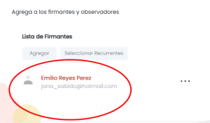 4. Y ya lo tendrás listo en tu lista de firmantes u observadores para crear tu documento según la opción seleccionada
