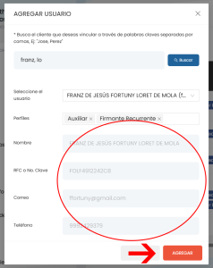 5. Verifica que los datos de la persona que deseas agregar sean los correctos y haz clic en AGREGAR