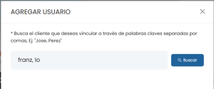 2. Busca al usuario que deseas agregar a través de palabras claves seguidas de comas (debe tener una cuenta Centinela), y haz clic en BUSCAR