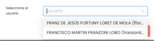 3. En caso de haber coincidencias con las palabras ingresadas, se te mostrará una lista de todos los usuarios dentro de Centinela que contienen las palabras o nombres ingresados, ubica al usuario de tu interés dentro de la lista y selecciónalo